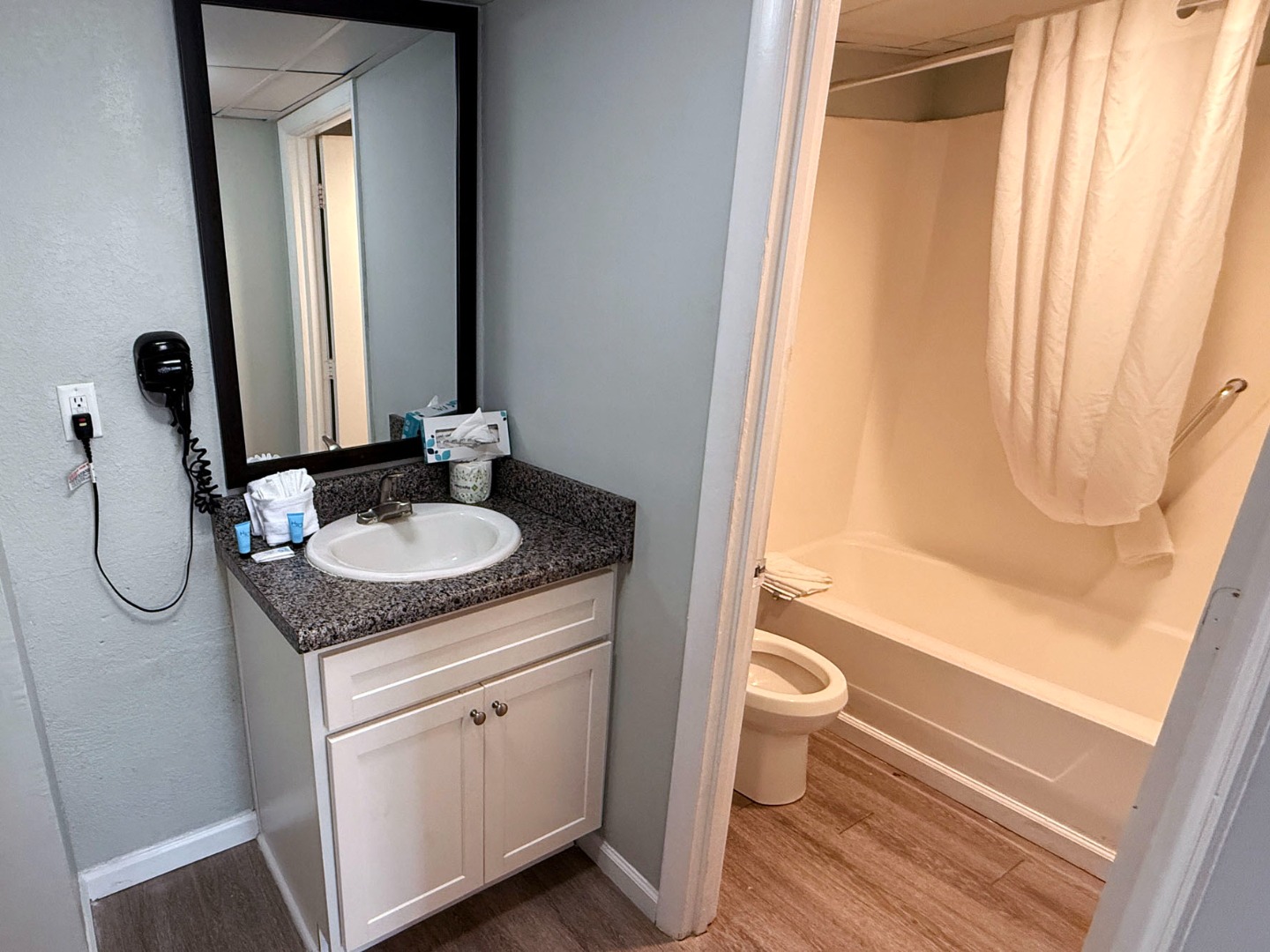 - Bath with tub and shower