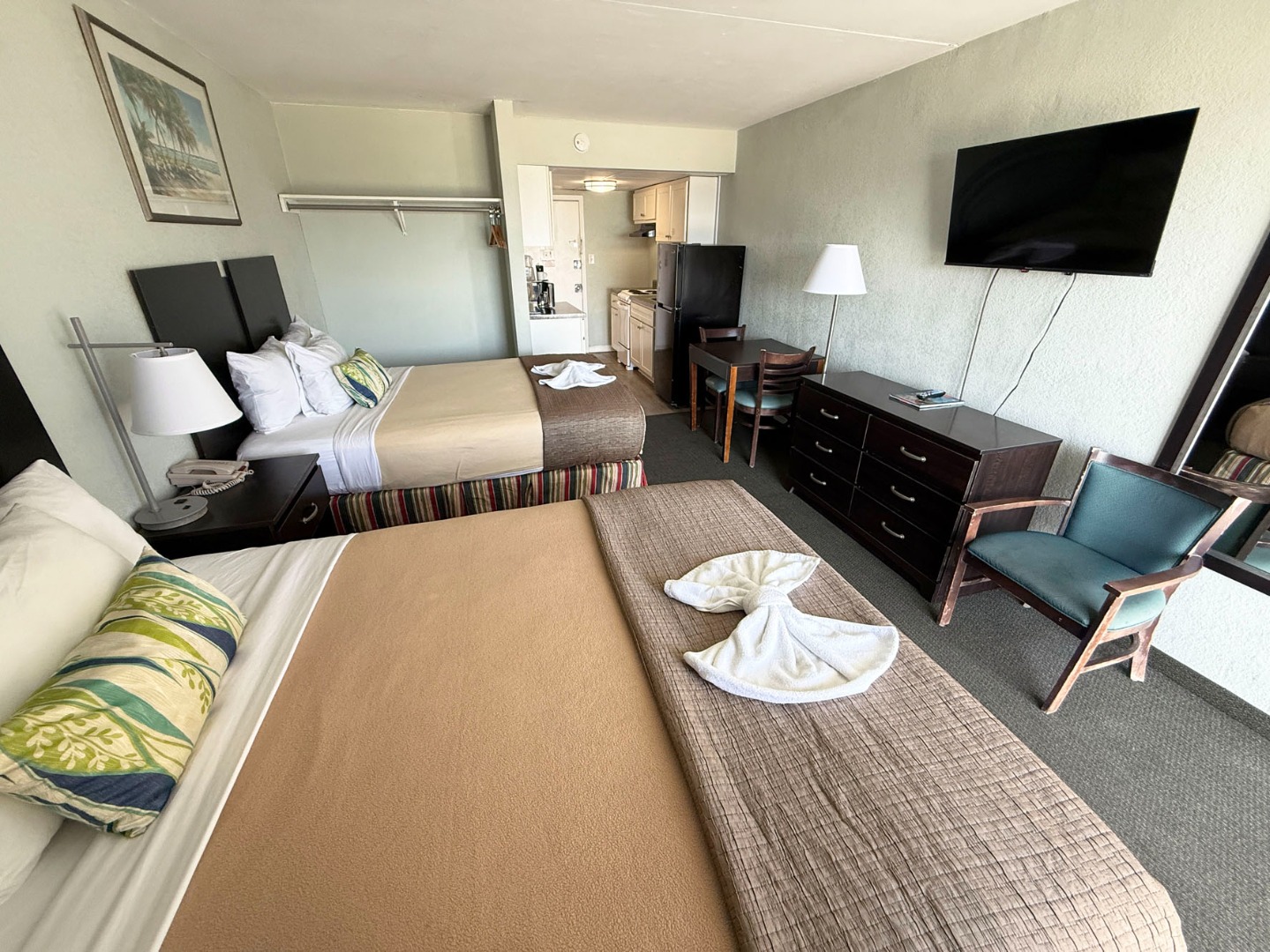 Side View Two Room Efficiency with 1 King & 2 Queens