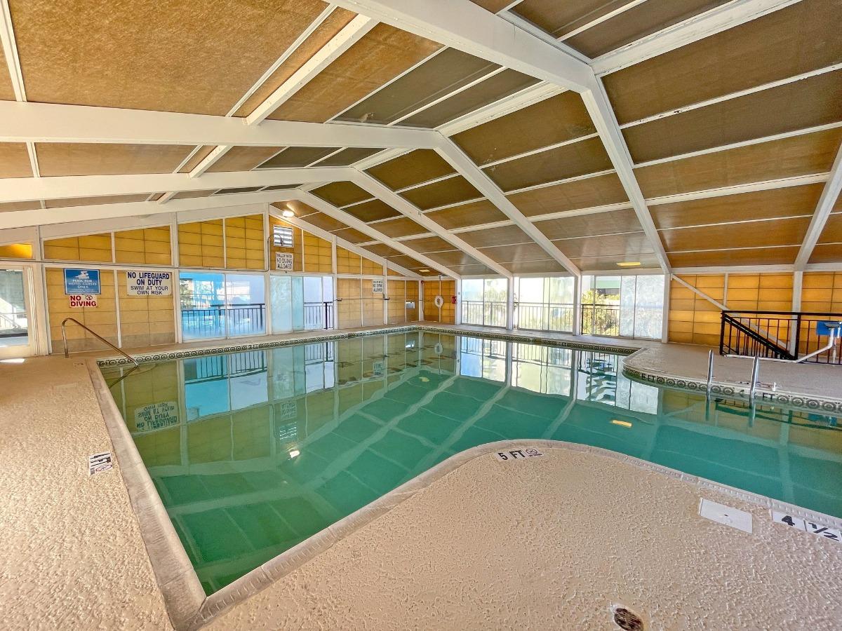 Along with clean and affordable accommodations you can enjoy an oceanfront pool and sun deck to catch some rays. If sand beneath your feet is what you desire feel free to use our direct access to miles of sandy beaches. On the slight chance of a rainy day take advantage of the large indoor pool and two hot tubs..