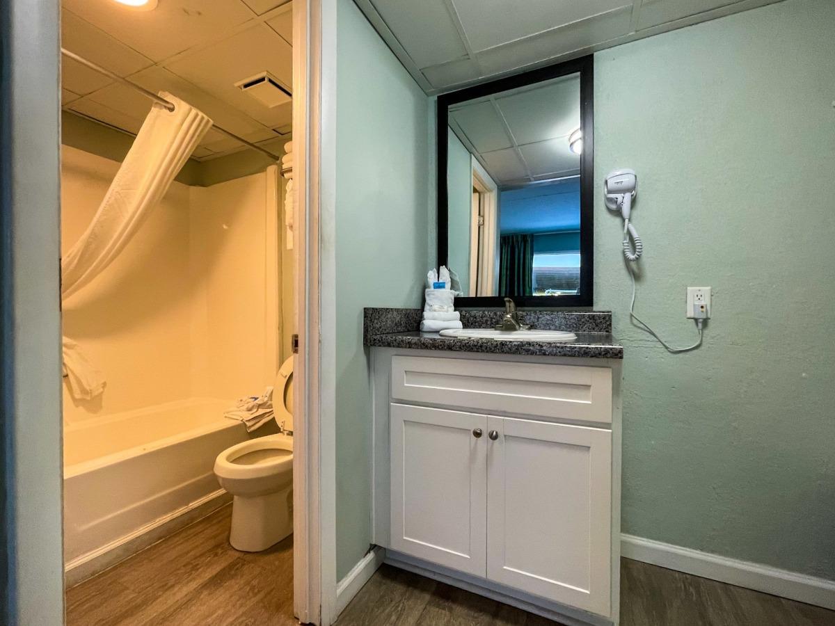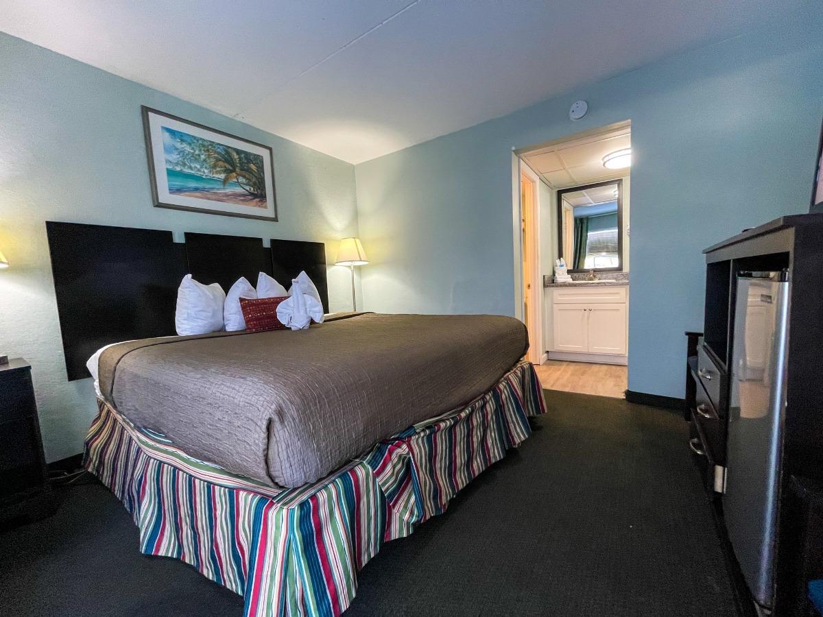 Enjoy a comfortable and budget-friendly stay in our 1 Queen Bed, 1 bath no view efficiency room at Ocean Plaza Hotel. This cozy room features all the essentials for a relaxing vacation, including a mini refrigerator, microwave, and coffee pot. With its prime location near the top attractions of Myrtle Beach, you'll be just steps away from the excitement. Experience the classic Myrtle Beach experience without breaking the bank and make the most of your vacation savings with this convenient and affordable room option.